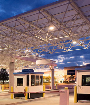 Genesis Arabia Space frame sunshade, are being used in highway toll gates and border check post to protect from High UV, Sun light, Rain and provide reliable protection against harsh weather.
